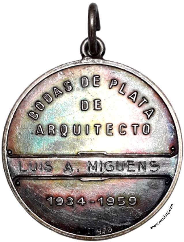 Colección MDS Anverso:Reverso: BODAS DE PLATA / DE / ARQUITECTO / [ LUIS A. MIGUENS ] / 1934 - 1959. Exergo: [ PLATA 900 ] Referencia: | |