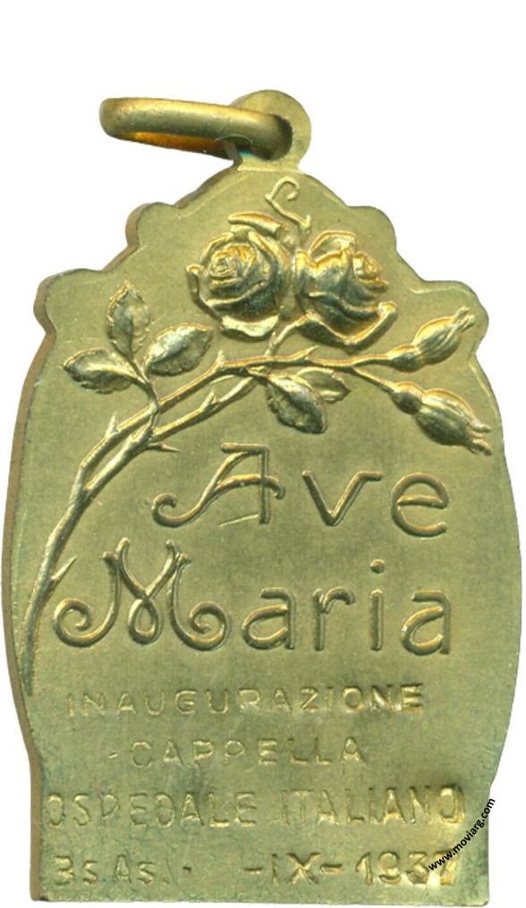 Anverso: SMA. VIRGEN NIÑA Reverso: AVE / MARIA / [ INAUGURAZIONE ] / [ CAPELLA ] / [ OSPEDALE ITALIANO ] / [ BS. AS. - - IX -1937 ] Referencia: | |