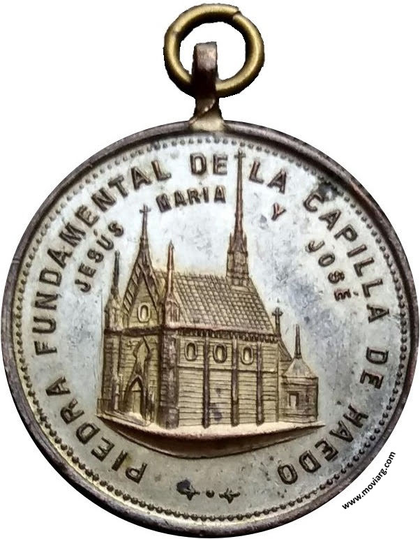 Anverso: PIEDRA FUNDAMENTAL DE LA CAPILLA DE HAEDO / JESÚS / MARIA / Y JOSÉ Reverso: BAJO EL PATROCINIO / DE S.S. IL. / EL ARZOBISPO / DE BUENOS AIRES / PADRINOS : / SR. EUSEBIO E. / GIMENEZ / STA. ROSA B. HAEDO / ABRIL 17 DE 1898 Referencia: | |