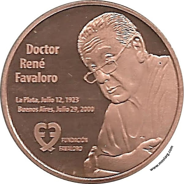 Anverso: DOCTOR / RENÉ / FAVALORO / LA PLATA, JULIO 12, 1923 / BUENOS AIRES, JULIO 29, 2000 / FUNDACIÓN / FAVALORO Reverso: REPUBLICA ARGENTINA / PERSONAJES DE LA HISTORIA Y LA CULTURA Referencia: | |