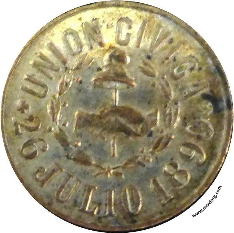 Anverso: UNION CIVICA / 26 JULIO 1890 Reverso: HONOR / Á LOS / QUE CAYERON / POR / EL PUEBLO Canto: Humberto Burzio: "Buenos Aires en la medalla" 1981 p32. Referencia: BURZIO-49 | |
