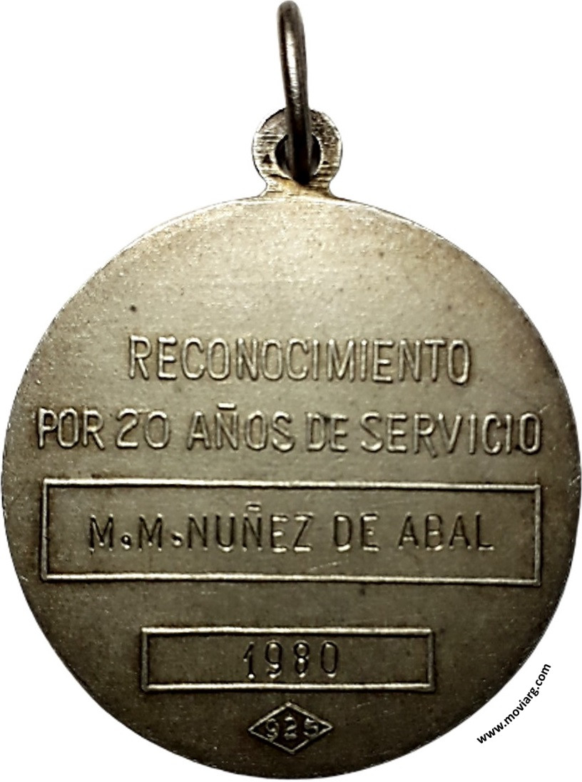 Anverso: REPUBLICA ARGENTINA / GAS DEL ESTADO Reverso: RECONOCIMIENTO / POR 20 AÑOS DE SERVICIO / [ M. M. NUÑEZ DE ABAL ] / [ 1980 ]. Exergo: <925> Referencia: | |