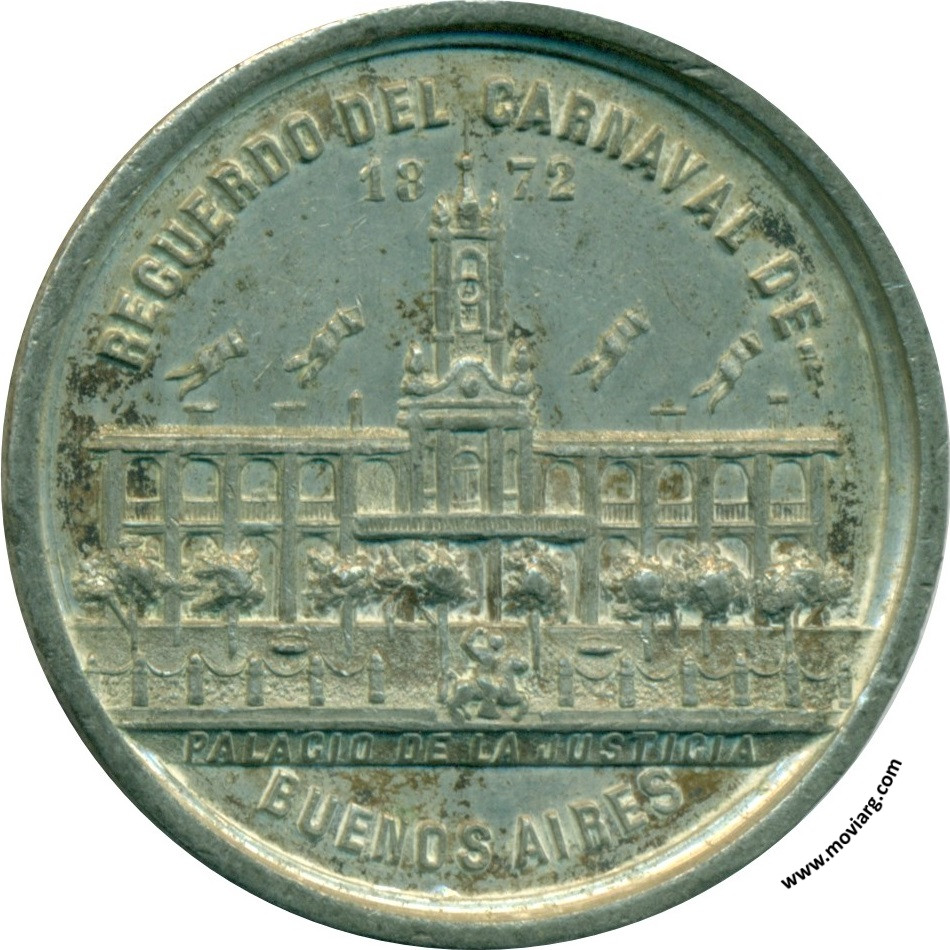 Anverso: RECUERDO DEL CARNAVAL DE / 1872 / PALACIO DE LA JUSTICIA / BUENOS AIRES Reverso: VIVA EL PROGRESO Y LA PROSPERIDAD DE LA / REPUBLICA ARGENTINA. Firma: A.G. Referencia: ROSA-578 | |