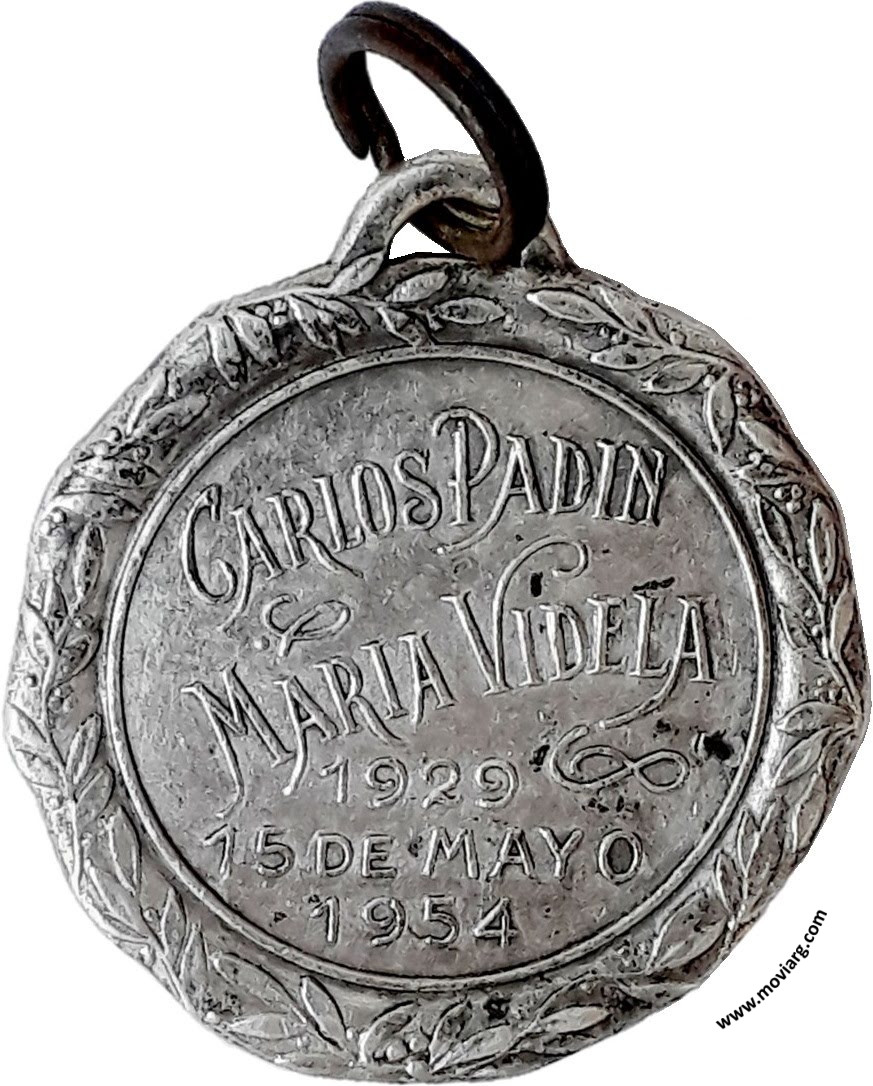 Anverso: CARLOS PADIN / MARIA VIDELA / 1929 / 15 DE MAYO / 1954 Reverso: [ P J ] Referencia: | |