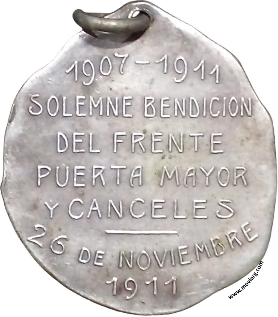 Anverso: IGLESIA DE NA. SA. DE LA PIEDAD / BUENOS AIRES Reverso: 1907 - 1911 / SOLEMNE BENDICION / DEL FRENTE / PUERTA MAYOR / Y CENCELES / 26 DE NOVIEMBRE / 1911. Exergo: [ 9·D ] Referencia: | |