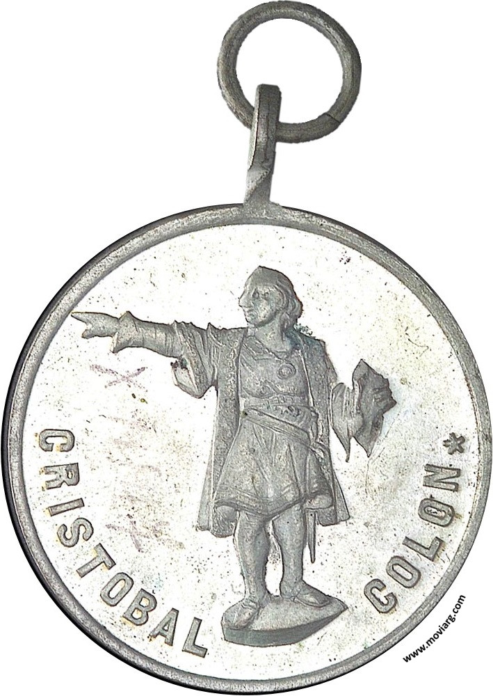 National Maritime Museum, Greenwich, London Anverso: CRISTOBAL COLONReverso: SOCIEDAD ESPAÑOLA / DE / GRAL. BELGRANO / 4° / CENTENARIO / DEL / DESCUBRIMIENTO / DE AMÉRICA / 12 OCTUBRE 1892 Referencia: FERRARI-204 (RG) | |