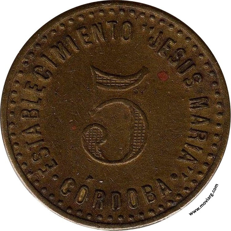 Colección Carlos Bravo Anverso: ESTABLECIMIENTO " JESUS MARIA " / 5 / CÓRDOBAReverso: B. LLERENA / VALE / 800 GR. Referencia: | |