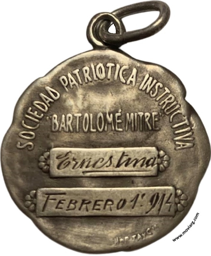 Anverso: BIBLIOTECA / POPULAR / " OLEGARIO V. ANDRADE " / JUNIN / 24 · ABRIL · 1910 Reverso: SOCIEDAD PATRIOTICA INSTRUCTIVA / " BARTOLOMÉ MITRE " / [ ERNESTINA ] / [ FEBRERO 1' 914 ]. Firma: HORTA Y CIA. Referencia: | |