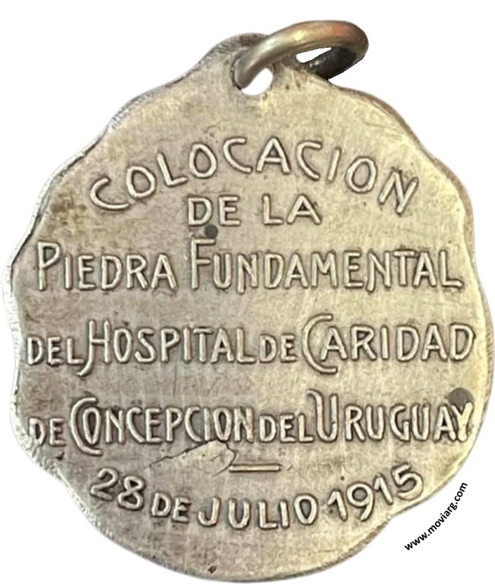 Anverso: CARIDAD Reverso: COLOCACION / DE LA / PIEDRA FUNDAMENTAL / DEL HOSPITAL DE CARIDAD / DE CONCEPCION DEL URUGUAY / 28 DE JULIO 1915 Referencia: | |