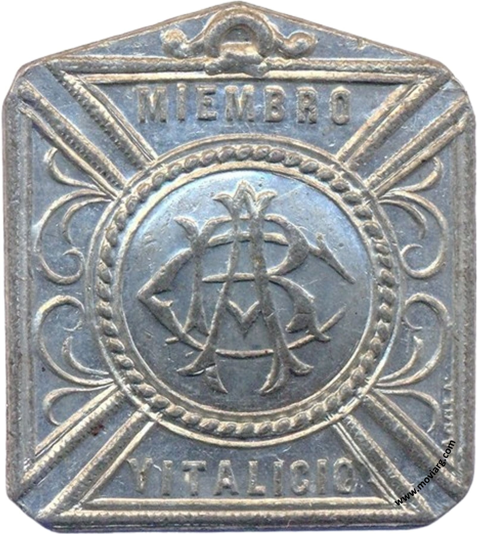 Anverso: MIEMBRO / VITALICIO. Campo: C. R. A. Reverso: Firma: [ S. CACCIA ] / [ GRABADOR ] / [ ROSARIO ] Referencia: | |