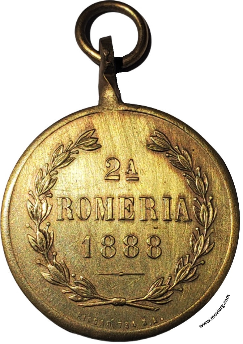 Anverso: LA SOCIEDAD ESPAÑOLA DE SOCORROS MUTUOS / Á / SUS / FAVORECEDORES / GUALEGUAYCHÚ Reverso: 2A. / ROMERIA / 1888. Firma: PIEDAD 734 B. A. Referencia: | |