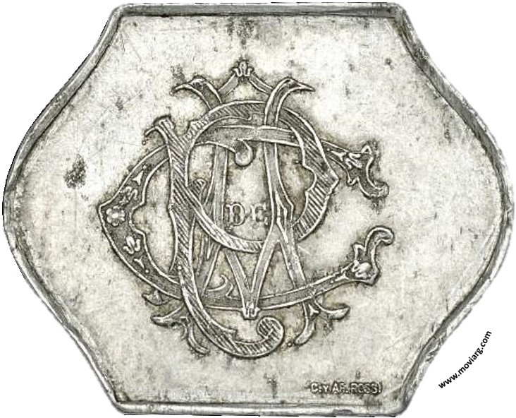 | Año: (1910) Fichas/Vales Metal: Aluminio - Módulo: 32x39mm Grabador: Constante y Alberto F. Rossi | |