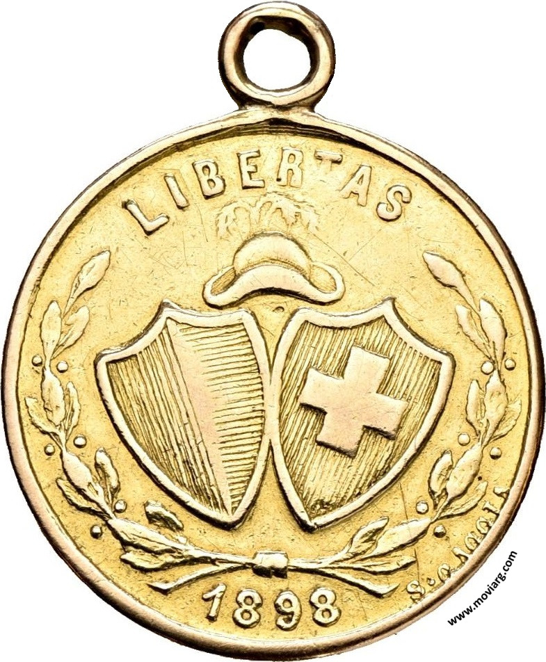 | Año: 1898 Colectividades Metal: Oro - Peso: 11.55gr - Rotación: 12hrs Grabador: Santiago Caccia | |