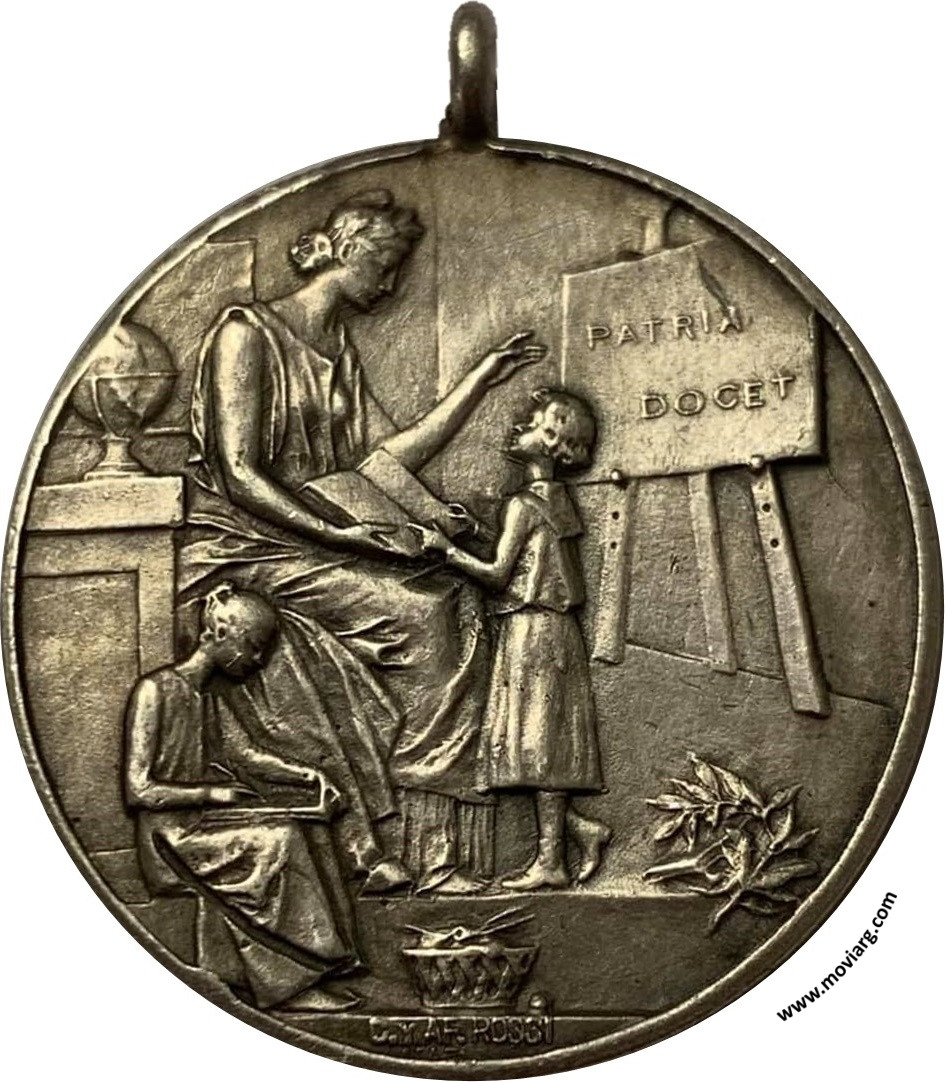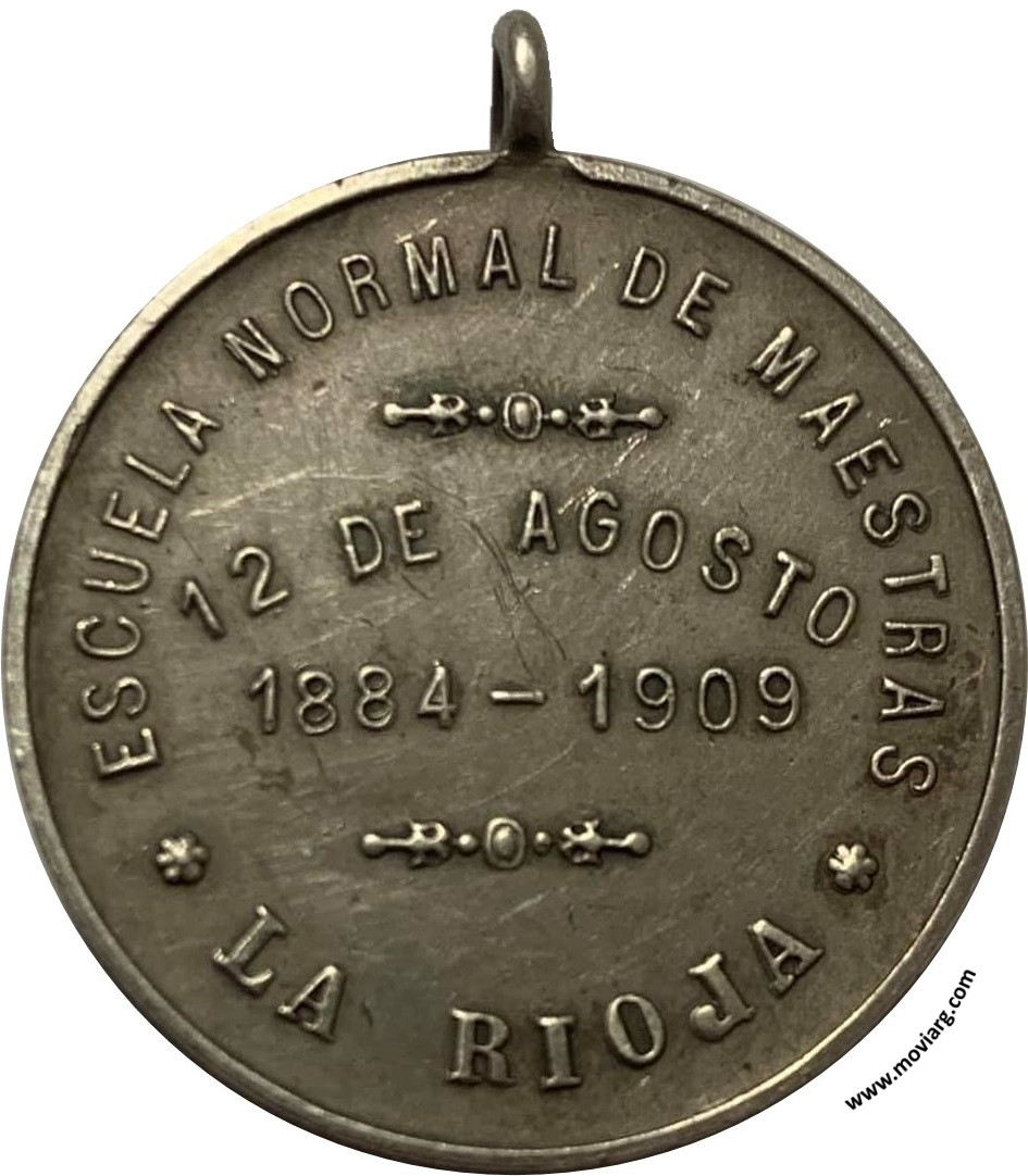 Anverso: Firma: C. Y AF. ROSSI. Campo: PATRIA / DOCET Reverso: ESCUELA NORMAL DE MAESTRAS / LA RIOJA / 12 DE AGOSTO / 1884 - 1909 Referencia: | |