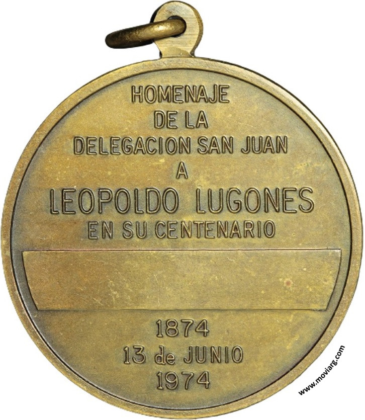 Anverso: ASOCIACIÓN NUMISMATICA ARGENTINA / BUENOS AIRES Reverso: HOMENAJE / DE LA / DELEGACION SAN JUAN / A / LEOPOLDO LUGONES / EN SU CENTENARIO / 1874 / 13 DE JUNIO / 1974 Referencia: | |