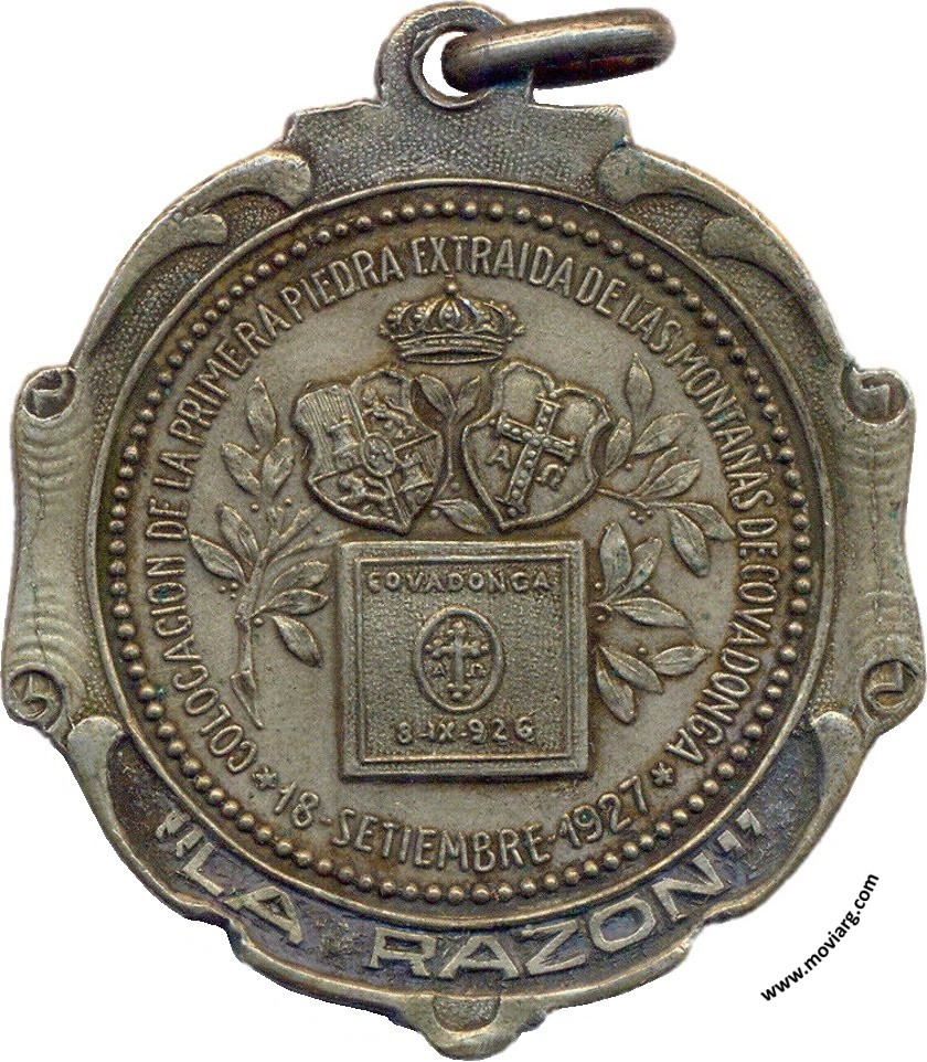 Anverso: COLOCACION DE LA PRIMERA PIEDRA EXTRAIDA DE LAS MONTAÑAS DE COVADONGA / 18 - SEPTIEMBRE - 1927 / " LA RAZON ". Campo: COVADONGA / 8-IX-926 Reverso: CENTRO ASTURIANO DE BUENOS AIRES. Firma: HORTA. Exergo: [ PLATA ] Referencia: | |