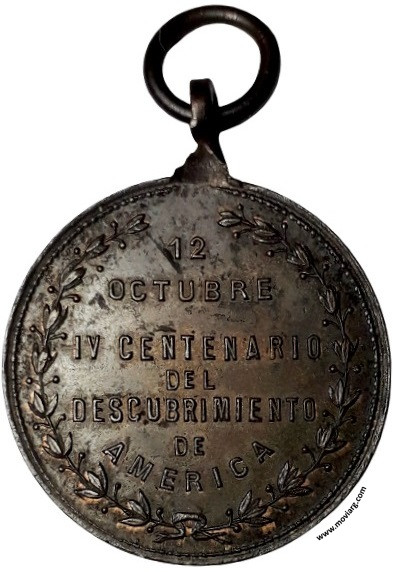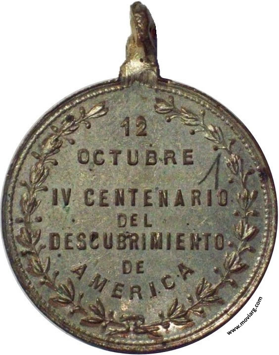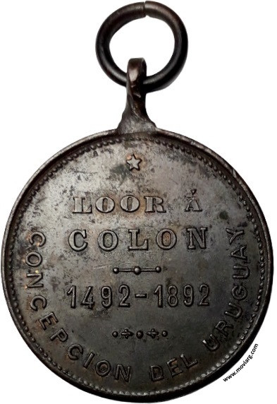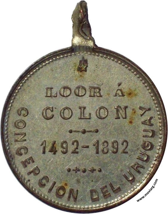 Anverso: LOOR Á / COLON / 1492 - 1892 / CONCEPCION DEL URUGUAY Reverso: 12 / OCTUBRE / IV CENTENARIO / DEL / DESCUBRIMIENTO / DE / AMERICA Referencia: | |
