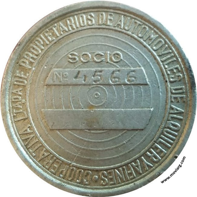 Anverso: YPF / 100% ARGENTINO Reverso: COOPERATIVA LTADA. DE PROPIETARIOS DE AUTOMOVILES DE ALQUILERES Y AFINES / SOCIO / N° [ 4566 ] Referencia: | |