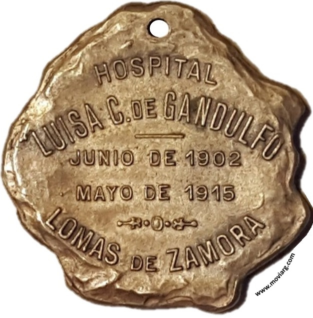 Anverso: CHARITAS. Firma: CONST. ROSSI Reverso: HOSPITAL / LUISA C. DE GANDULFO / JUNIO DE 1902 / MAYO DE 1915 / LOMAS DE ZAMORA Referencia: | |
