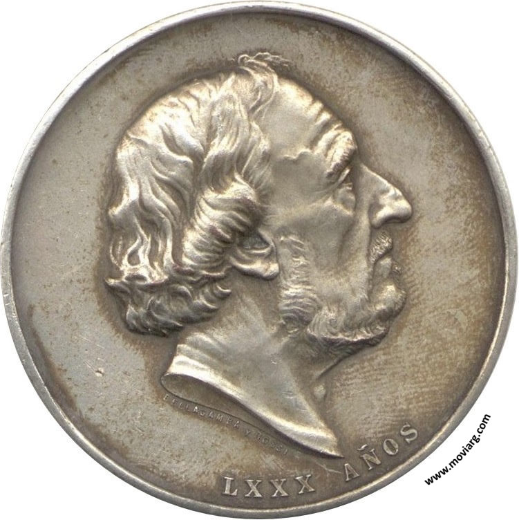 Anverso: LXXX AÑOS. Firma: BELLAGAMBA Y ROSSI Reverso: EL PUEBLO / DE / SAN PEDRO / ( PROVINCIA DE BUENOS AIRES ) / AL ILUSTRE Y BENEMÉRITO / TENIENTE GENERAL / BARTOLOMÉ MITRE / 1821 26 DE JUNIO 1901 Referencia: | |