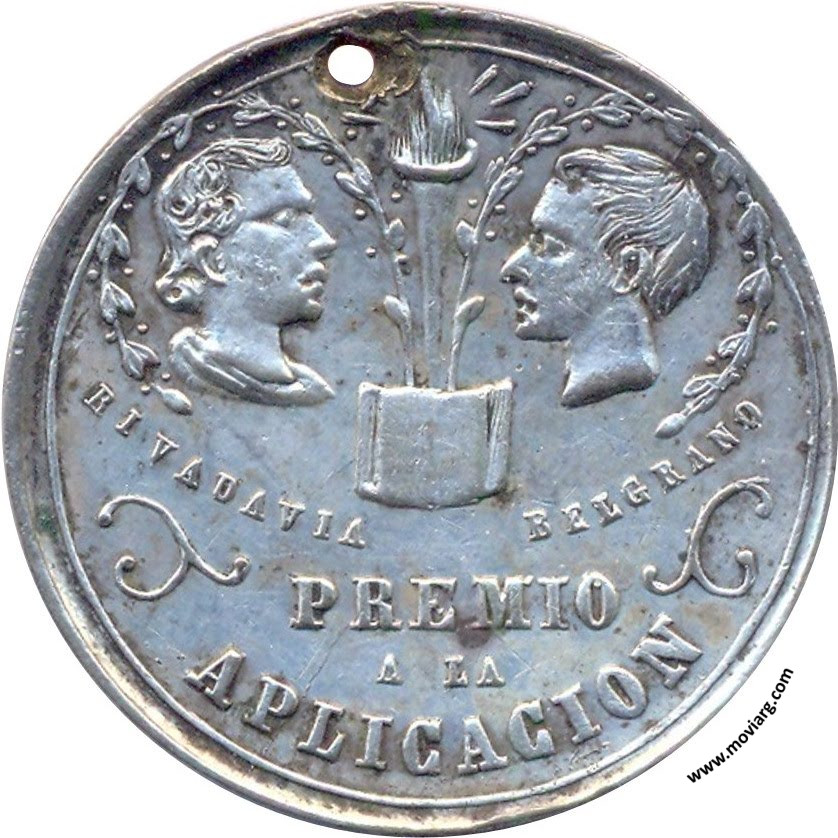 Anverso: RIVADAVIA / BELGRANO / PREMIO / A LA / APLICACION Reverso: C. E. DISTRITO DEL SOCORRO / BUENOS AIRES. Referencia: | |