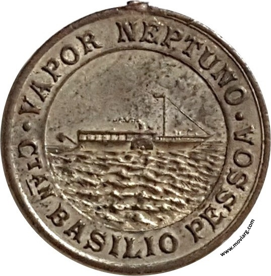 Anverso: VAPOR NEPTUNO / CTAN. BASILIO PESSOA Reverso: 1ER. VIAGE (sic) / POR EL / RIO IBUCUY / 29 DE JUNIO / DE 1892. Firma: ORZALI B. Y C. Referencia: | |