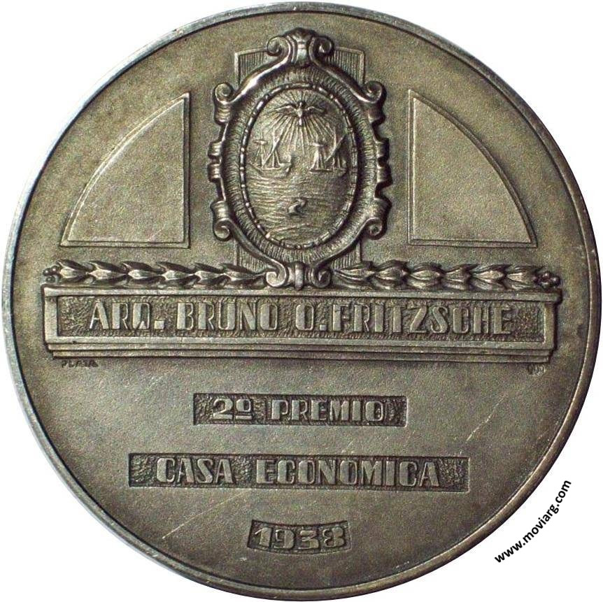Anverso: Reverso: ARQ. BRUNO O. FRITZSCHE / 2° PREMIO / CASA ECONOMICA / 1938. Campo: [ PLATA ] / [ 900 ] Referencia: | |