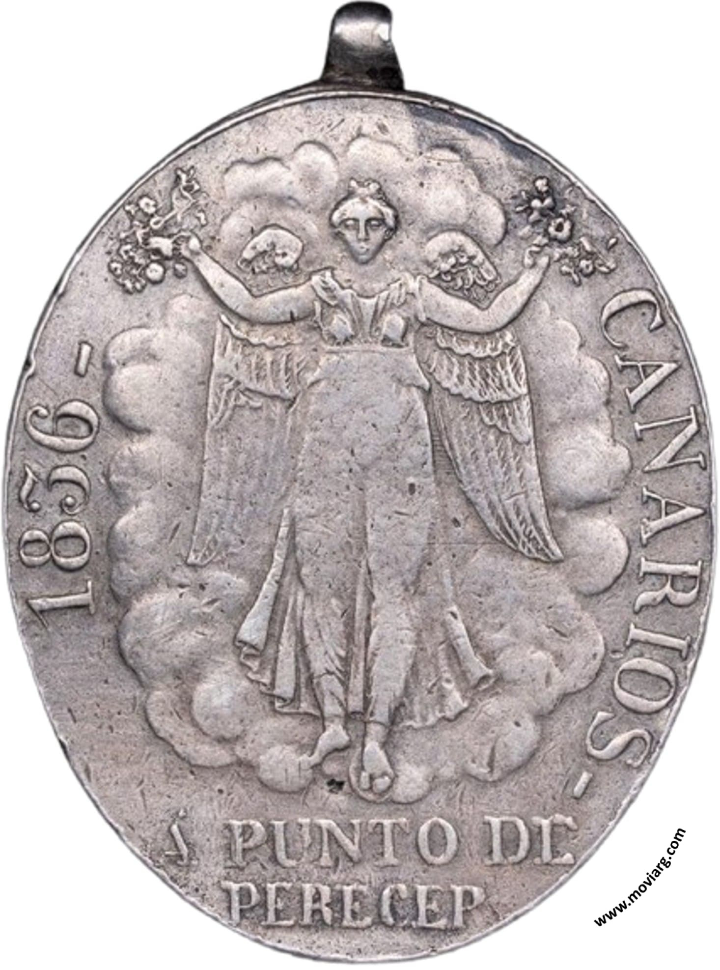 Anverso: 1836 - CANARIOS / A PUNTO DE / PERECER Reverso: SALVÓ Á SUS SEMEJANTES CON RIESGO DE SU VIDA Referencia: BURZIO-5365 ROSA-/26 | |