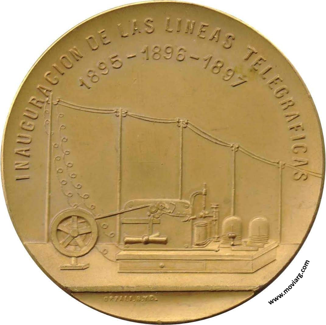 Anverso: INAUGURACION DE LAS LINEAS TELEGRAFICAS / 1895 - 1896 - 1897. Firma: ORZALI B. Y C. Reverso: Á / TUYÚ - PILA - LOBERIA / GENERAL ALVARADO / GENERAL PINTO - GENERAL VILLEGAS / GENERAL ARENALES - GENERAL LAMADRID / CORONEL VIDAL - CORONEL SUAREZ / GOBERNADOR DE LA PROVINCIA DE BUENOS-AIRES / DR. GUILLERMO UDAONDO / MINISTRO DE OBRAS PUBLICAS / DR. EMILIO FRERS / DIRECTOR DEL TELEGRAFO / CAMILO V. ISLA Referencia: ROSA-/174 | |