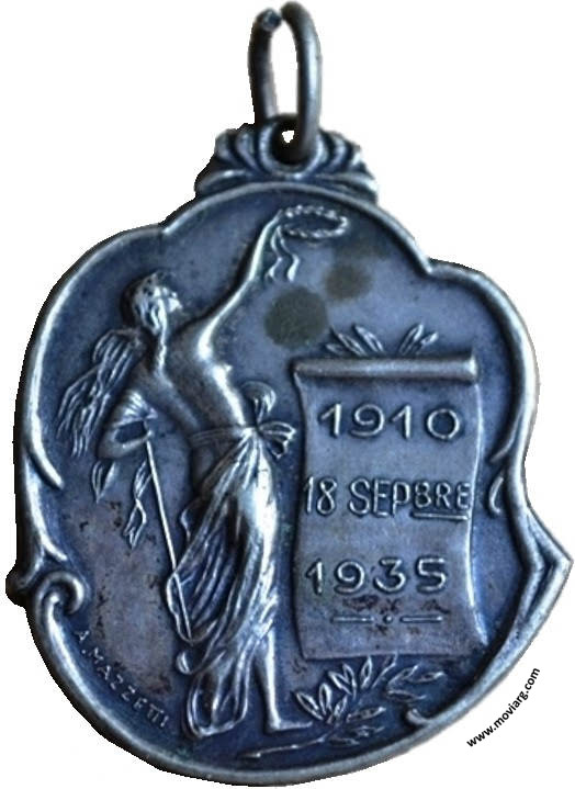 Anverso: 1910 / 18 SEPBRE. / 1935. Firma: A. MAZZETTI Reverso: CLUB SOCIAL / LAPRIDA / EN SUS / BODAS DE PLATA Referencia: | |