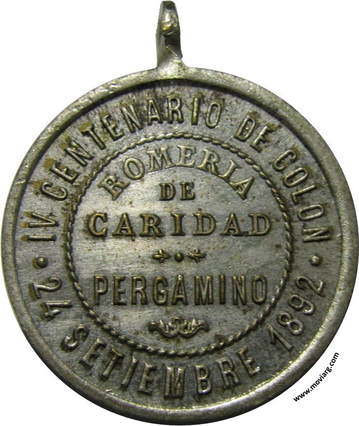 Colección Edgardo Muela Anverso:Reverso: IV CENTENARIO DE COLON / 24 SETIEMBRE 1892 / ROMERIA / DE / CARIDAD / PERGAMINO Referencia: | |