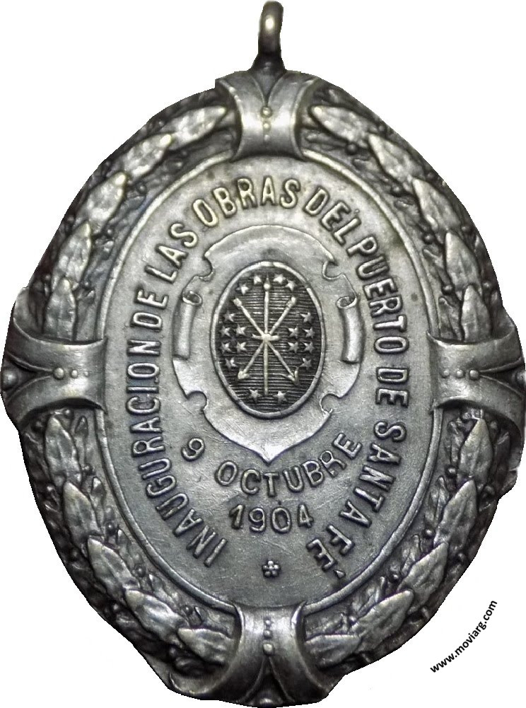 Colección Nicolás Pittavino Anverso: DR. RODOLFO FREYRE GDOR. DE LA PROVINCIA. Firma: BELLAGAMBA Y ROSSIReverso: INAUGURACION DE LAS OBRAS DEL PUERTO DE SANTA FÉ / 9 OCTUBRE / 1904 Referencia: | |
