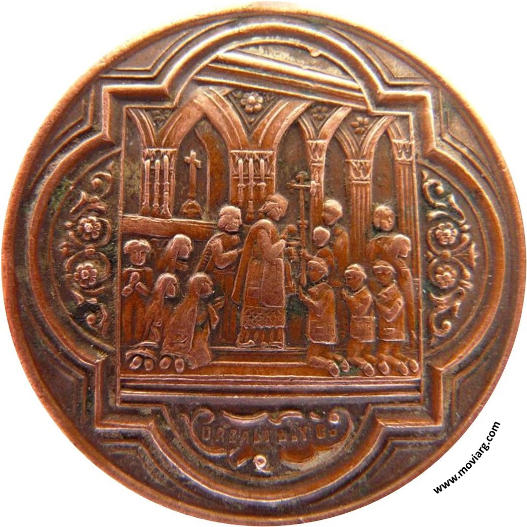 | Año: (1895) Religión Metal: Cobre - Módulo: 30mm - Rotación: 12hrs Grabador: Ignacio Orzali, José Bellagamba y Constante Rossi | |
