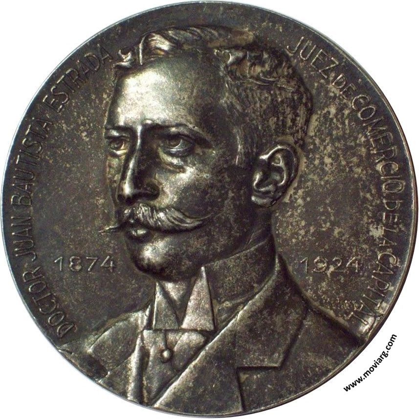 Anverso: DOCTOR JUAN BAUTISTA ESTRADA / JUEZ DE COMERCIO DE LA CAPITAL / 1874 / 1924. Firma: J. M. LUBARY Reverso: COLOCACION DE LA PLACA EN LA CALLE JUEZ ESTRADA / PRACTICÓ CON / MODESTIA LA / JUSTICIA Y LA / BONDAD / XI / AGOSTO 1928 Referencia: | |