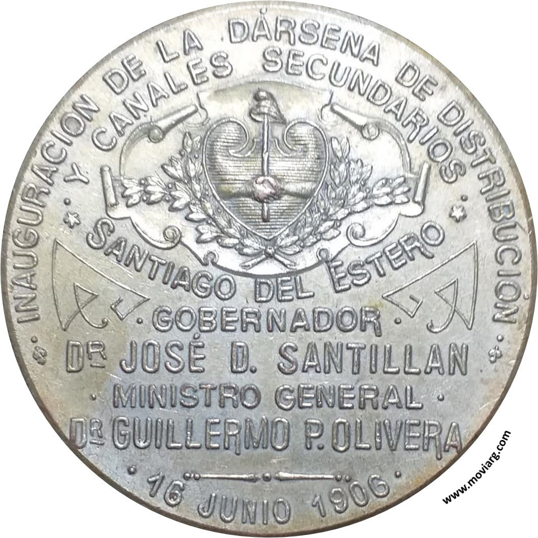 Numismática Binumis Anverso: Firma: BELLAGAMBA / Y ROSSIReverso: INAUGURACION DE LA DÁRSENA DE DISTRIBUCIÓN / Y CANALES SECUNDARIOS / SANTIAGO DEL ESTERO / GOBERNADOR / DR. JOSÉ D. SANTILLAN / MINISTRO GENERAL / DR. GUILLERMO P. OLIVERA / 16 JUNIO 1906 Referencia: | |