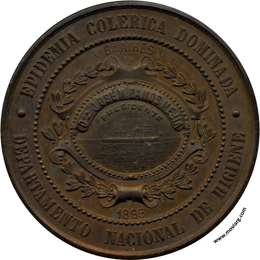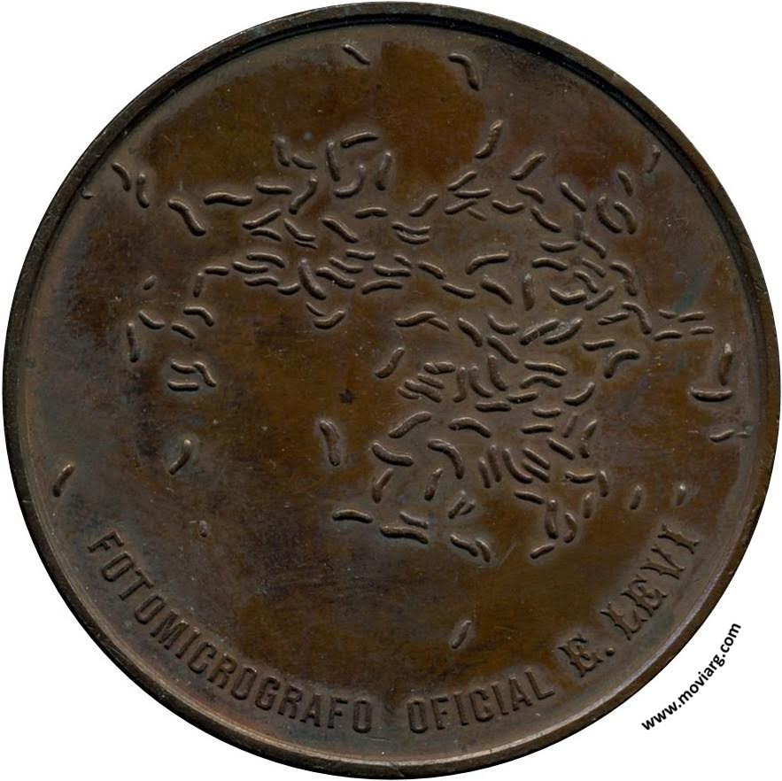 Anverso: EPIDEMIA COLERICA DOMINADA / DEPARTAMENTO NACIONAL DE HIGIENE / ( BS. AIRES ) / 1895 / DON JOSÉ M. RAMOS MEJIA / PRESIDENTE Reverso: FOTOMICROGRAFO OFICIAL E. LEVI Referencia: | |