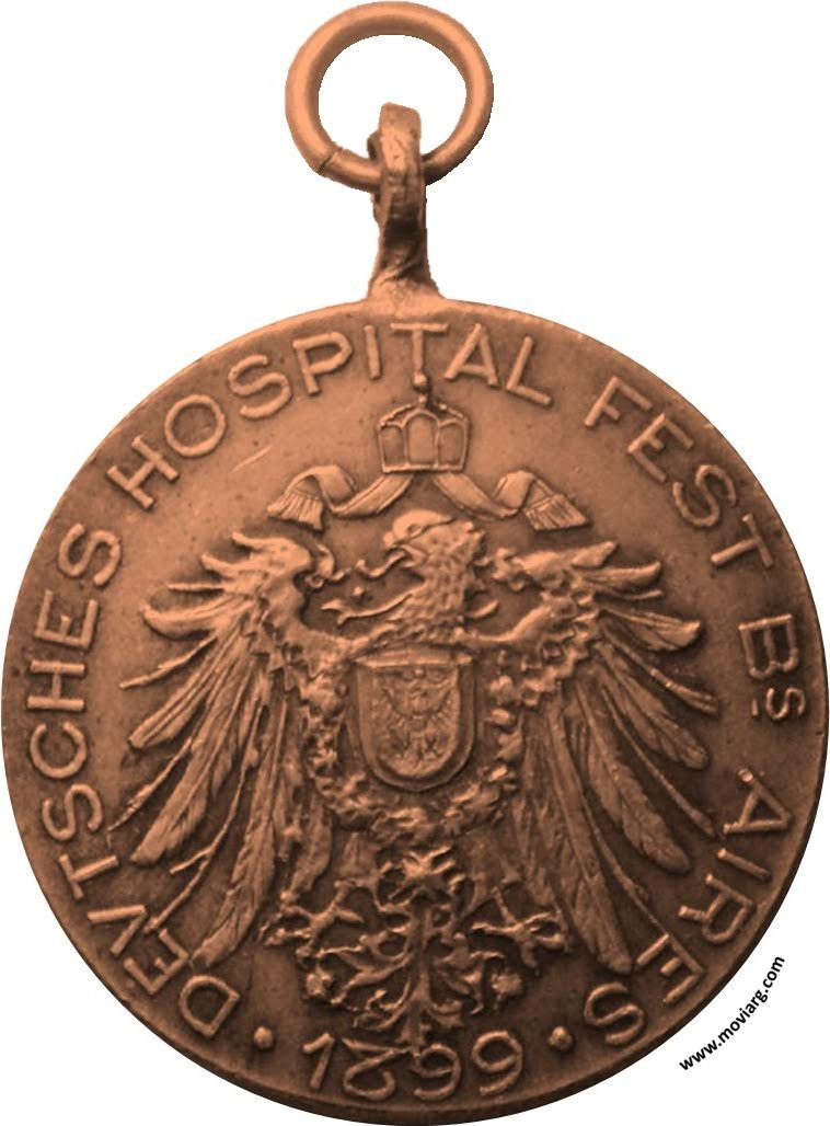 Anverso: MEDICINA HOMINUM SERVATRIX Reverso: DEUTSCHES HOSPITAL FEST BS. AIRES / 1899 Referencia: | |