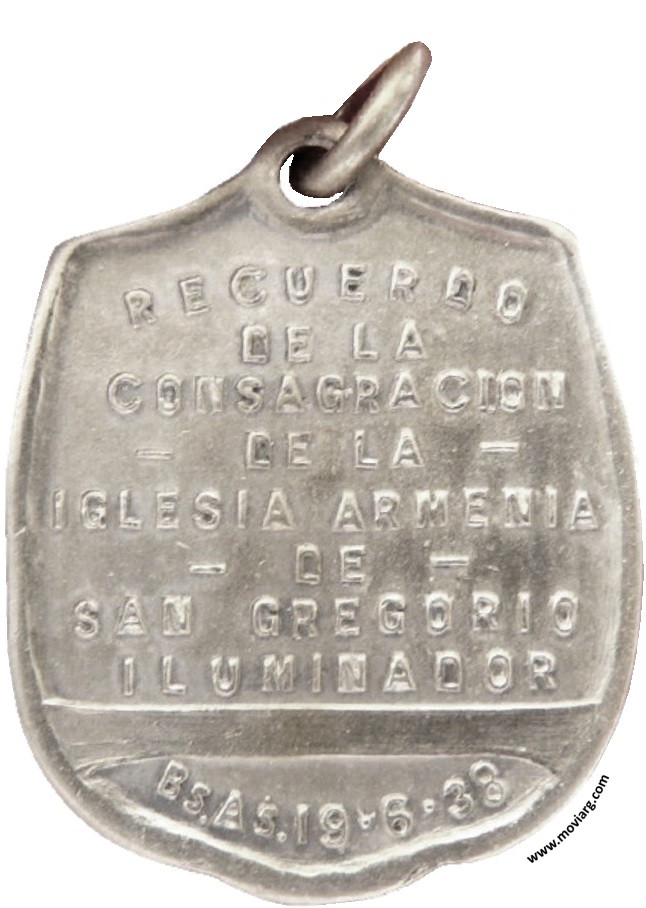 Anverso: Reverso: RECUERDO / DE LA / CONSAGRACION / DE LA / IGLESIA ARMENIA / DE / SAN GREGORIO / ILUMINADOR / BS. AS. 19 · 6 · 38 Referencia: | |