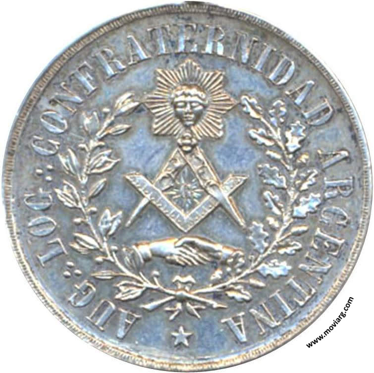 Anverso: AUG .·. LOG .·. CONFRATERNIDAD ARGENTINA Reverso: FUNDADA / EN EL / AÑO 5856 / D .·. L .·. V .·. L .·. Referencia: BURZIO-4159 FERRARI-296 (RG) | |