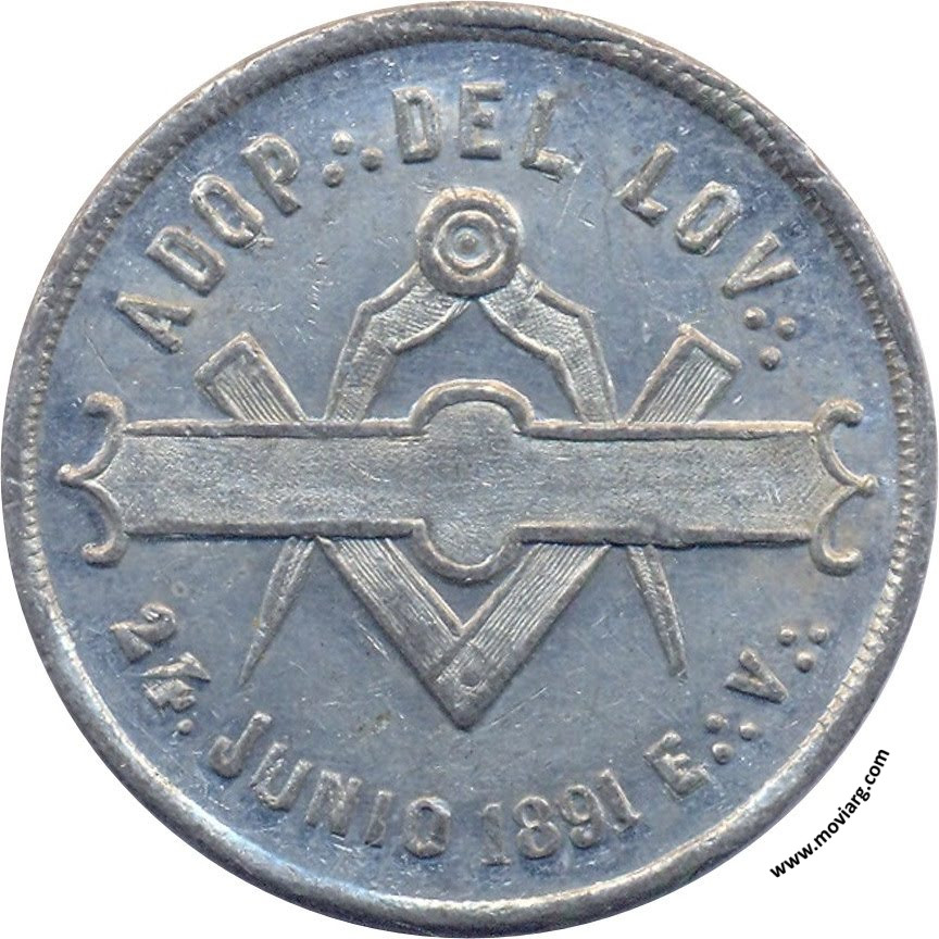 Anverso: ADOP .·. DEL LOV .·. / 24. JUNIO 1891 E .·. V .·. Reverso: AUG .·. LOG .·. CAP .·. UNION / VALL .·. DEL ROSARIO / FUNDADA / EN / 1860. / E .·. V .·. Referencia: | |