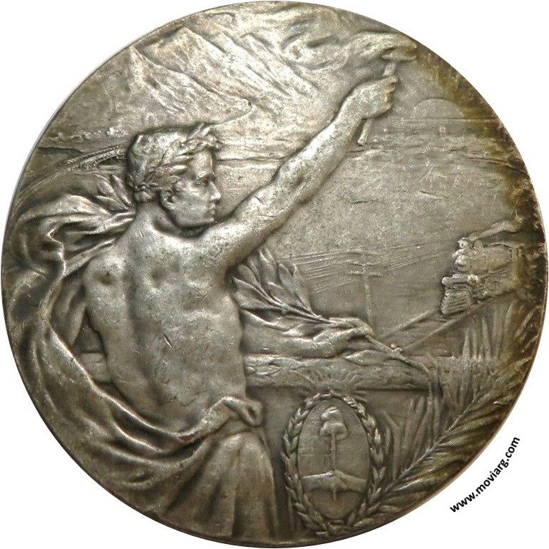 Anverso: Reverso: REPÚBLICA ARGENTINA / FERRO-CARRILES / PATAGÓNICOS / LINEA SAN ANTONIO OESTE / Á NAHUEL HUAPI / APERTURA AL SERVICIO PÚBLICO / KM. 0. Á 110 / 19 DE MARZO DE 1910 / PRESIDENTE DE LA REPÚBLICA / DR. JOSÉ FIGUEROA ALCORTA / MINISTRO DE OBRAS PÚBLICAS / DR. EZEQUIEL RAMOS MEXIA. Firma: J. GOTTUZZO Y CA. Referencia: | |