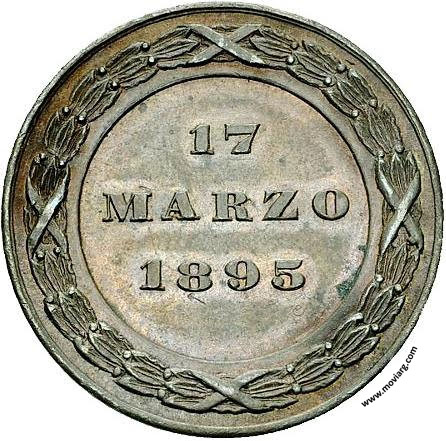 | Año: 1895 Tiro Metal: Plata - Peso: 14.1gr - Módulo: 30.36mm - Espesor: 2.15mm - Rotación: 12hrs | |