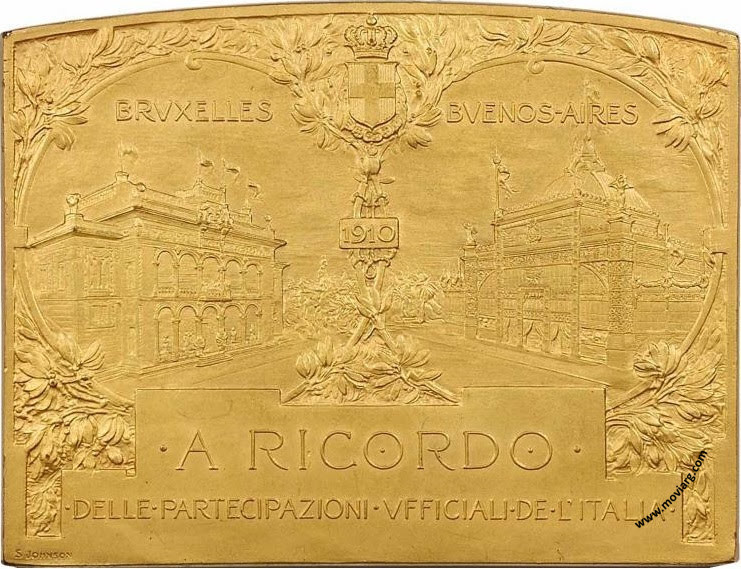 Anverso: COMITATO NAZLE. / PER LE / ESPOSIZIONI / ITALIANE / ALL' ESTERO Reverso: BRVXELLES / BUENOS-AIRES / 1910 / A RICORDO / DELLE PARTECIPAZIONI VFFICIALI DE L'ITALIA. Firma: S. JOHNSON Referencia: | |
