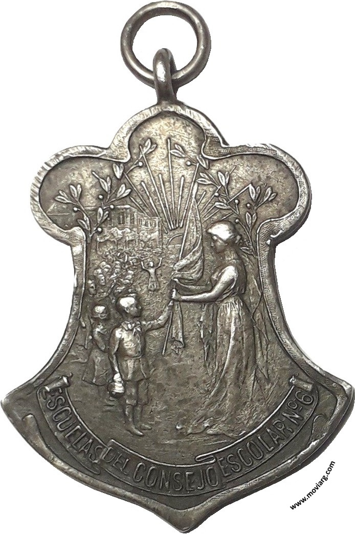 Colección MDS Anverso: ESCUELAS DEL CONSEJO ESCOLAR N° 6Reverso: DISTRIBUCION / DE LA / BANDERA NACIONAL / M. M. DE YRIONDO / PRESIDENTE / S. M. ROCCA / J. J. PORTELA / J. C. LAGOS / VOCALES / J. G. PAZ / SECRETARIO / J. URANGA / INSPECTOR / 12 SETIEMBRE 1908 Canto: Liso. PLATA Referencia: | |