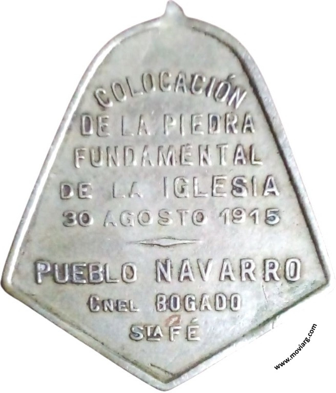 Anverso: Firma: CONSTANTE ROSSI Reverso: COLOCACIÓN / DE LA PIEDRA / FUNDAMENTAL / DE LA IGLESIA / 30 AGOSTO 1915 / PUEBLO NAVARRO / CNEL. BOGADO / STA. FÉ Referencia: | |