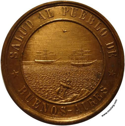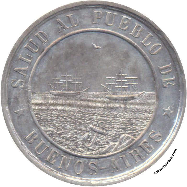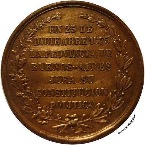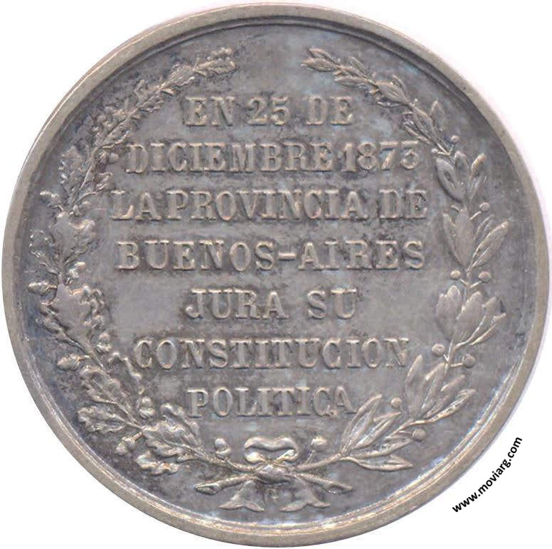 Anverso: SALUD AL PUEBLO DE / BUENOS - AIRES Reverso: EN 25 DE / DICIEMBRE 1873 / LA PROVINCIA DE / BUENOS-AIRES / JURA SU / CONSTITUCION / POLITICA. Exergo: G Referencia: BURZIO-17 ROSA-254 | |