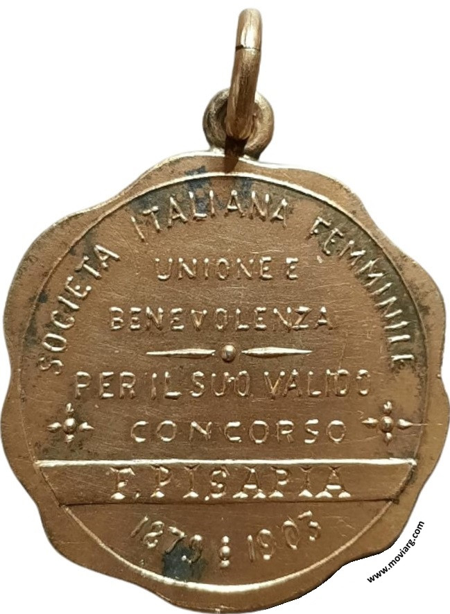 Anverso: Reverso: SOCIETA ITALIANA FEMMINILE / UNIONE E / BENEVOLENZA / PER IL SUO VALIDO / CONCORSO / [ F. PISAPIA ] / 1879 · 1903 Referencia: | |