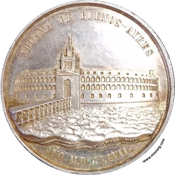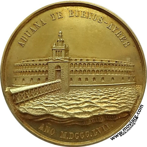 Anverso: ADUANA DE BUENOS-AYRES / AÑO M.DCCC.LVII. Firma: C. GUILLAUME Reverso: EL GOBIERNO DEL ESTADO RECONOCIDO A LOS SERVICIOS DE LA COMISION DIRECTIVA DE LA OBRA Canto: Liso. Humberto Burzio: "Buenos Aires en la medalla" 1981 p253. Referencia: BURZIO-717 | |