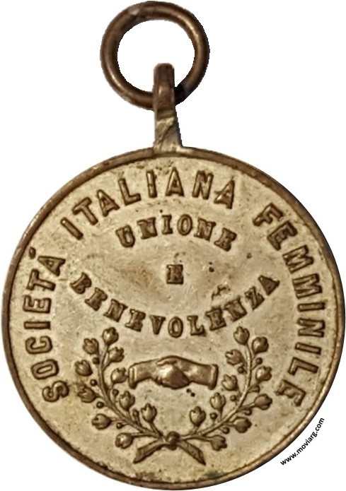 Anverso: SOCIETÁ ITALIANA FEMMINILE / UNIONE / E / BENEVOLENZA Reverso: INAUGURAZIONE DELLO STENDARDO / 15 / GENNAIO / 1898 Referencia: | |