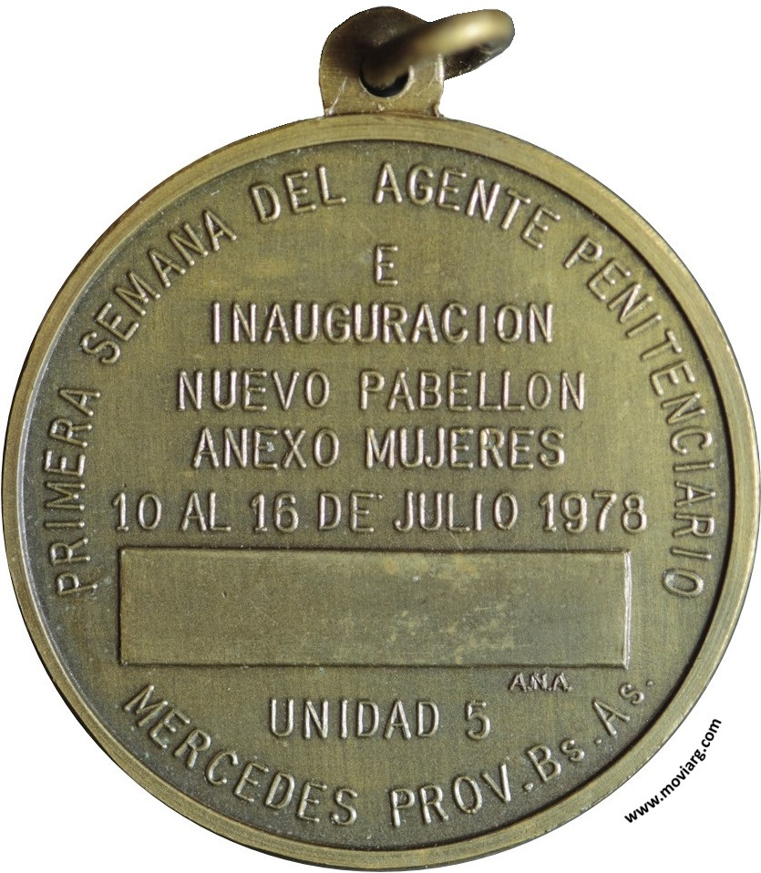 Colección @parryyanumismatico Anverso:Reverso: PRIMERA SEMANA DEL AGENTE PENITENCIARIO / E / INAUGURACION / NUEVO PABELLON / ANEXO MUJERES / 10 AL 16 DE JULIO 1978 / UNIDAD 5 / MERCEDES PROV. BS. AS. Firma: A.N.A. Referencia: | |